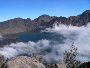 From the crater rim are sweeping views across the lake Segara Anak